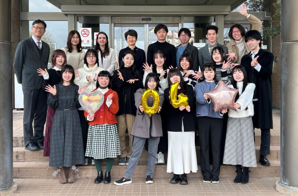 卒論中間発表会にあわせて4年生が全員集合し、文学部玄関前で撮影しました。