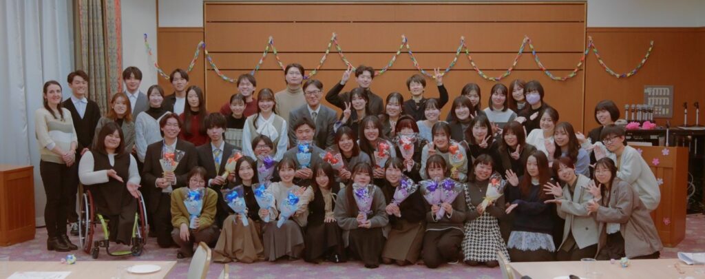 卒業生・修了生の前途を祝し、予餞会を行いました。送る側も送られる側も日文ネタを存分に散りばめた出し物を展開し、笑い声の絶えない楽しいひとときとなりました。